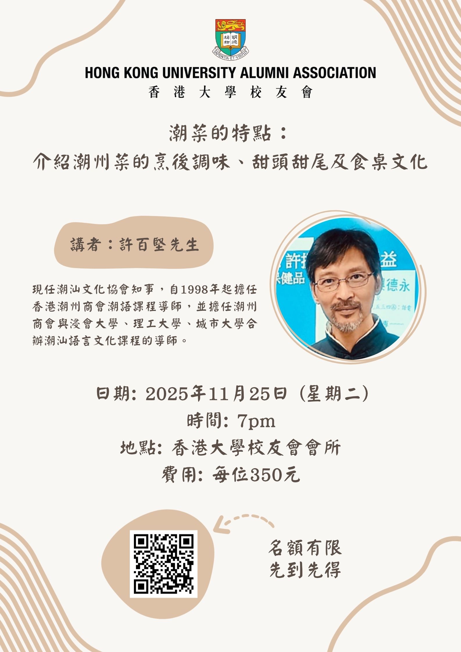 HKUAA Dinner Talk - 潮菜的特點:介紹潮州菜的烹後調味、甜頭甜尾及食桌文化